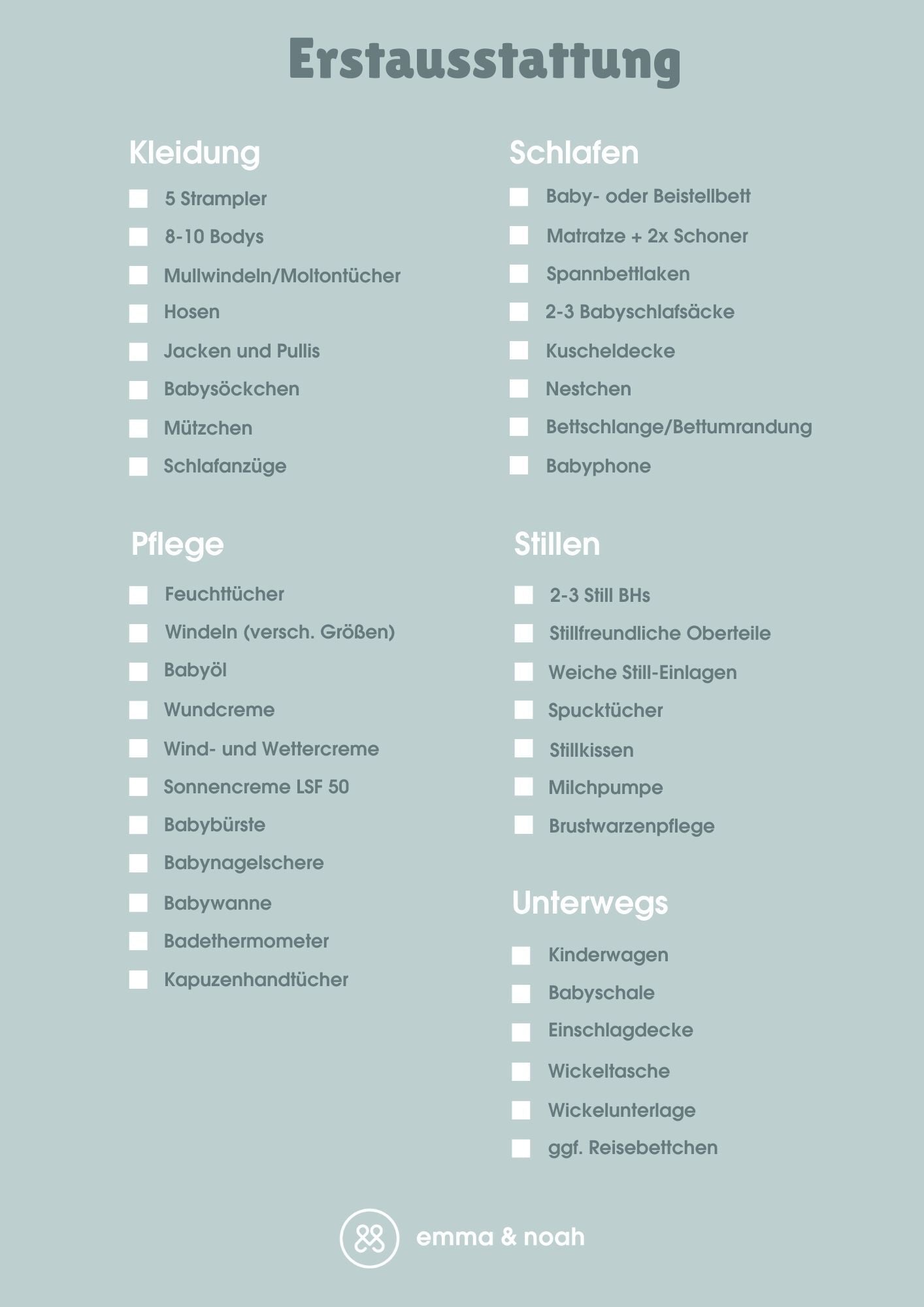 „Bei der Erstausstattung gibt es vieles zu bedenken – von der Jahreszeit bis zu den individuellen Bedürfnissen Deines Babys. Unsere Checklisten helfen Dir, den Überblick zu behalten und genau das auszuwählen, was wirklich sinnvoll ist.“