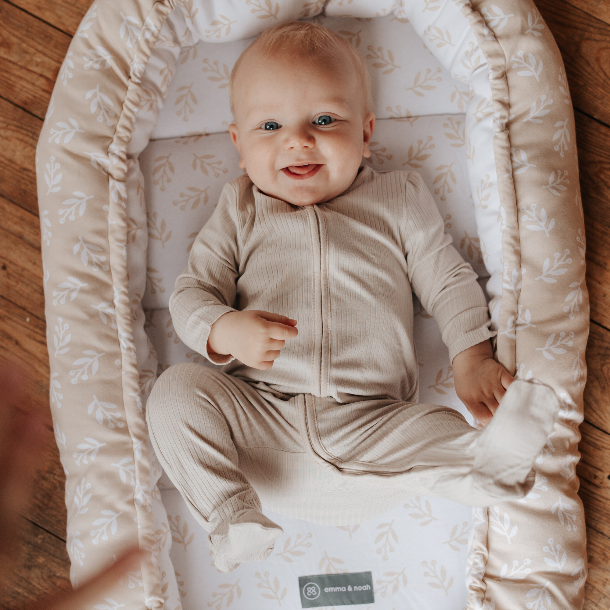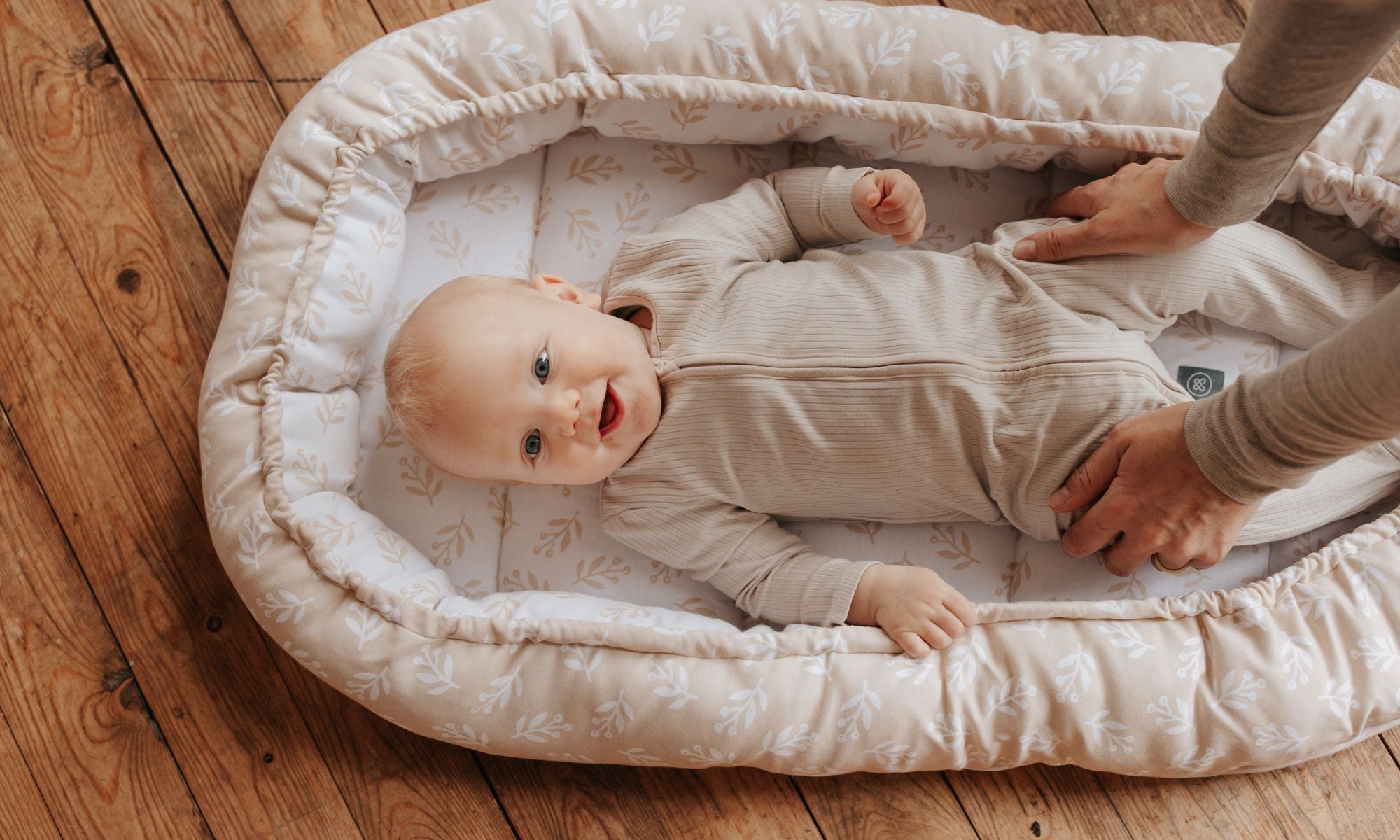Besonders Neugeborene schlafen sehr viel. Nicht nur in der Nacht, sondern auch tagsüber. Damit Du Dein Baby in dieser Zeit nicht unbeaufsichtigt in seinem Bettchen schlafen oder liegen lassen musst, haben wir unser Babynestchen im Wende-Design entworfen. Damit kannst Du Deinen kleinen Schatz zu jeder Zeit in Deiner Nähe haben und musst Dir keine Sorgen machen. Für maximale Sicherheit empfehlen wir, das Babynestchen auf dem Boden zu nutzen. So kannst Du Deinen Schatz immer in Deiner Nähe haben: Egal, ob beim Duschen, Kochen oder beim Entspannen auf dem Sofa. Gleichzeitig hat Dein Baby seine gewohnte Schlafumgebung für den Tagschlaf und kann unbeschwert schlummern oder einfach nur liegen, während Du alltägliche Dinge erledigen kannst.