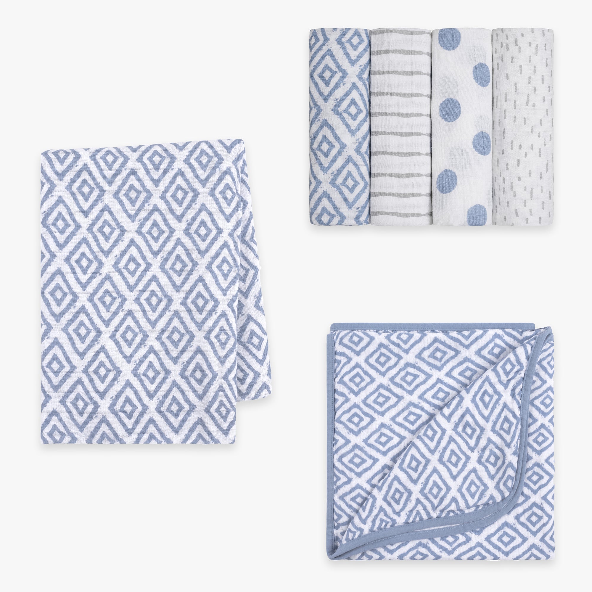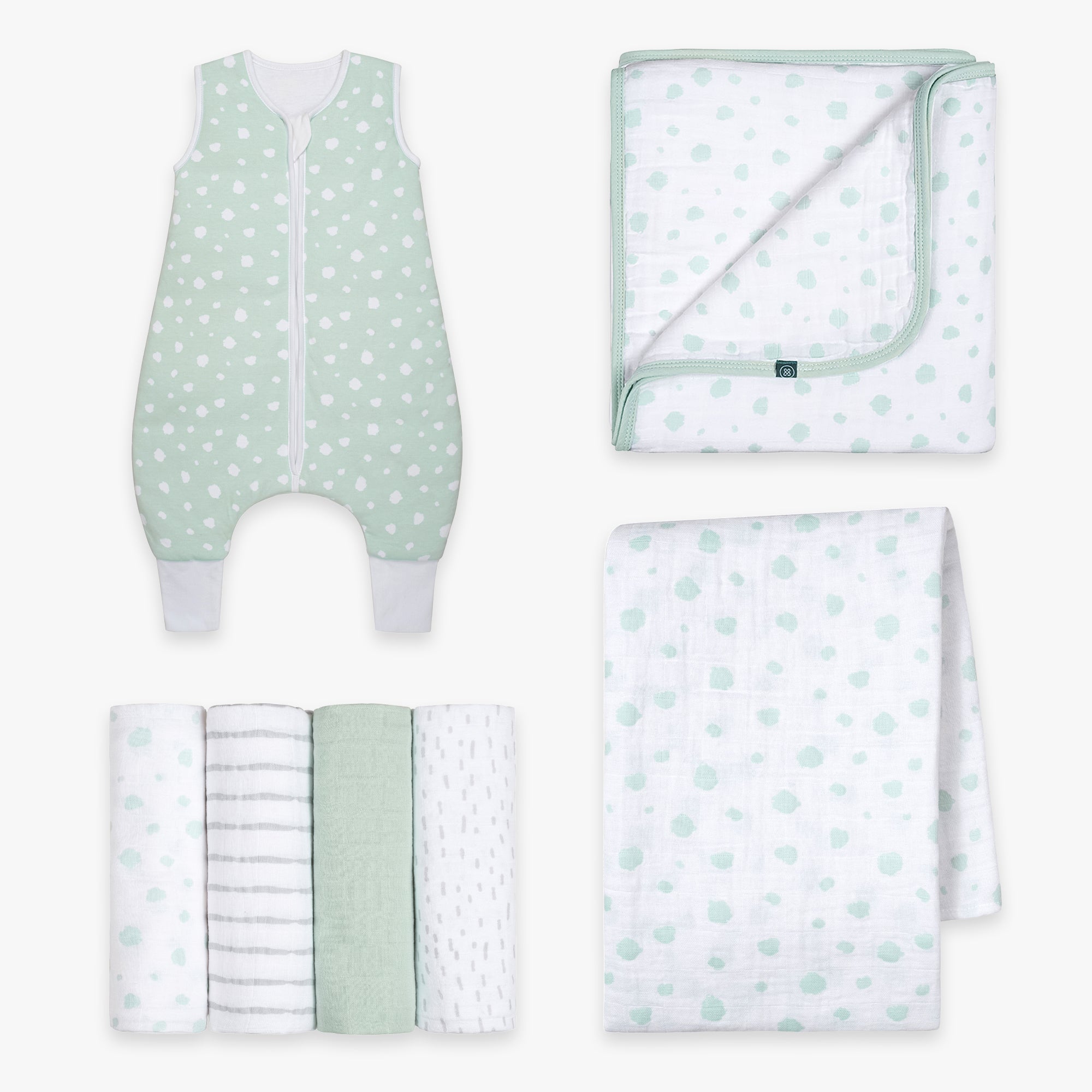Dieses Bundle eignet sich hervorragend für die nächste Babyparty. Von Kuscheldecken, Spucktüchern und Pucktüchern kann man nie genug haben. Umso besser, wenn sie auch noch toll aussehen und kuschelig weich sind.