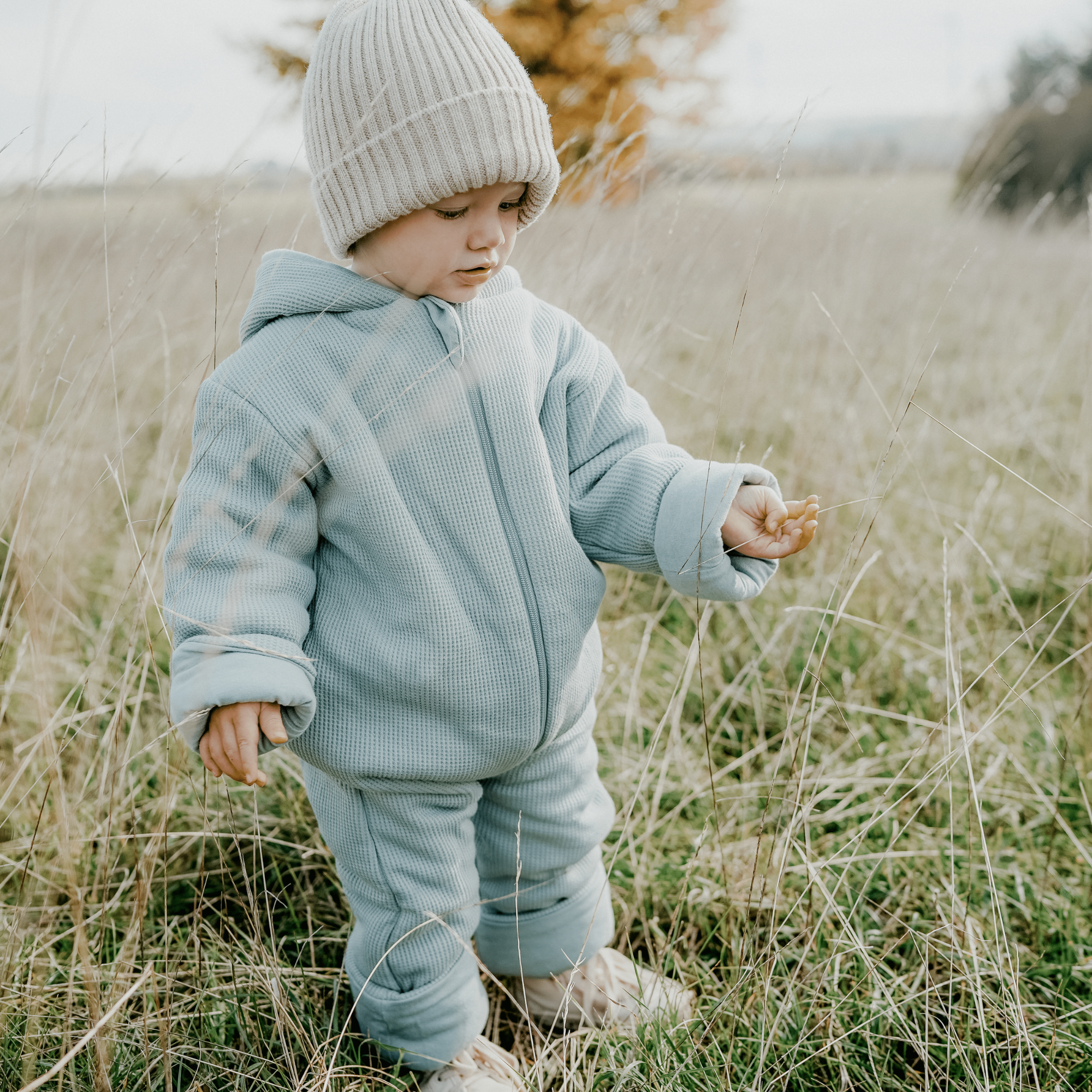 Die emma & noah Overalls halten Deinen kleinen Schatz zur kalten Jahreszeit kuschelig warm. Dank der Wattierung reicht es aus, wenn Dein Kind darunter seine gewöhnliche Kleidung trägt. Eine zusätzliche Jacke ist nicht notwendig. Die Kapuze wärmt außerdem das Köpfchen Deines Kinder, sodass es weniger Wärme verliert. An den Ärmeln und Beinchen haben wir umschlagbare Stoffklappen verarbeitet, sodass sich die Öffnungen unterwegs im Kinderwagen verschließen lassen. So gelangt keine kalte Luft in den Baby Anzug hinein. Perfekt für ausgiebige Spaziergänge im Herbst und Winter! Entdecke jetzt auch unsere Wollwalk Overalls.