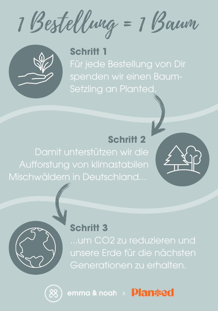 Damit unterstützen wir die gemeinnützige Organisation Planted beim Schutz von klimastabilen Mischwäldern in Deutschland, um CO2 zu reduzieren und unsere Erde für die nächsten Generationen zu erhalten.