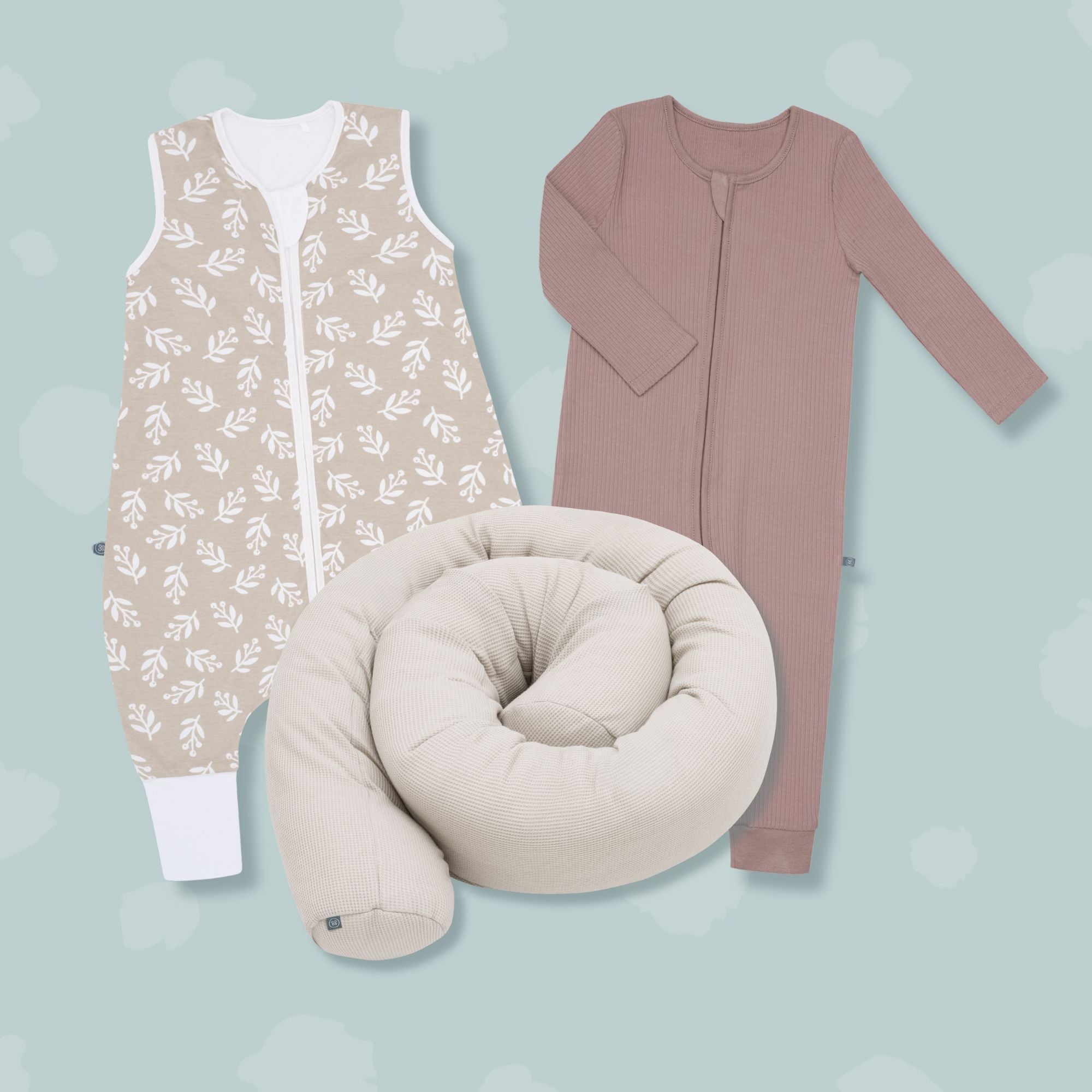 Damit Dein Baby ruhig und erholsam schlummern kann, empfehlen wir ein Set aus zwei Schlafsäcken, gemütlichen Schlafanzügen und einer schützenden Bettumrandung. Mehr braucht es für eine sichere Schlafumgebung nicht.